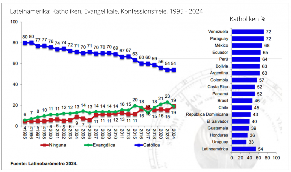 Die Ergebnisse der PEW-Umfragen entsprechen den referierten Befunden des Latinobarometers („Konfessionen in Lateinamerika, 1995-2024“) für den Zeitraum 1995-2024.