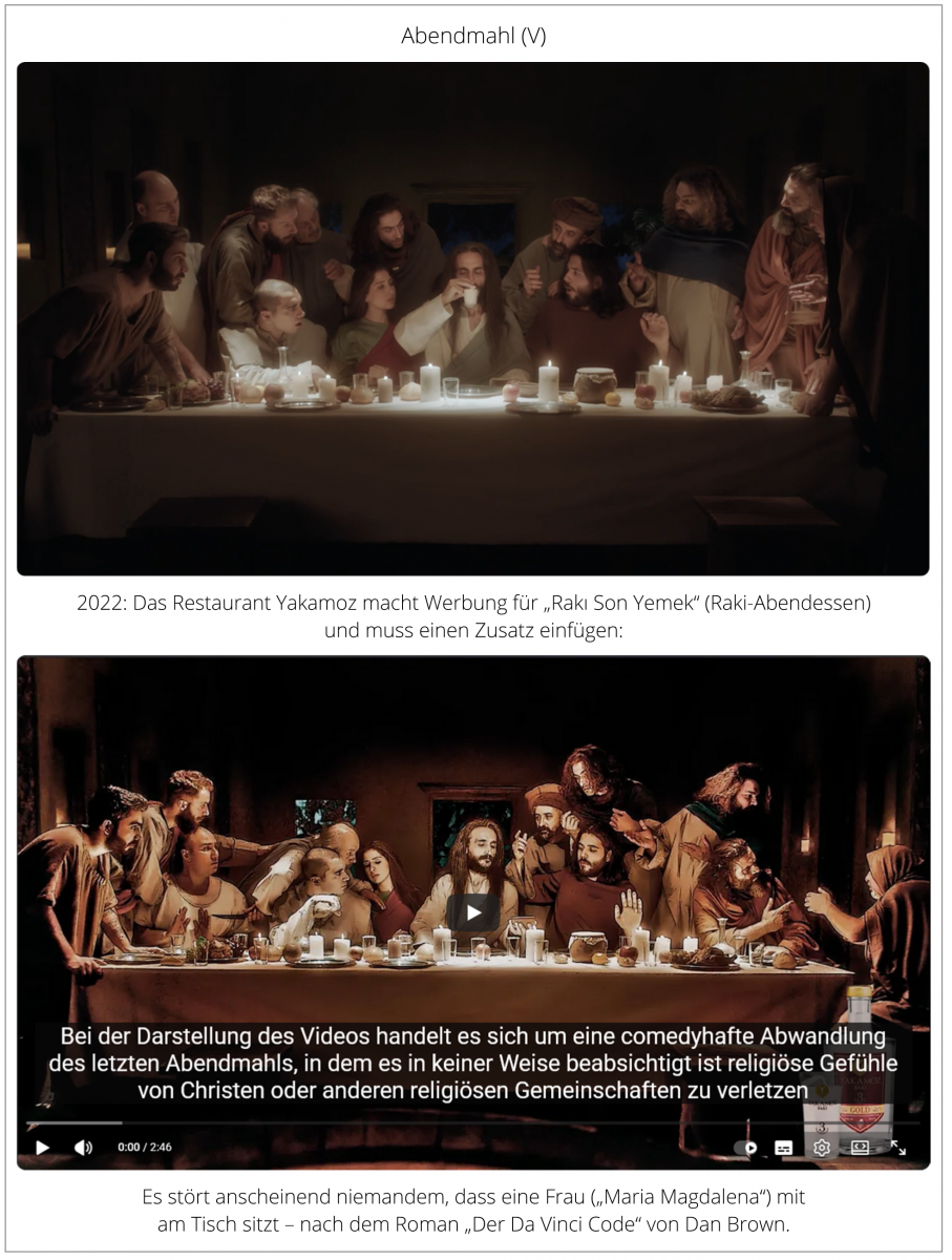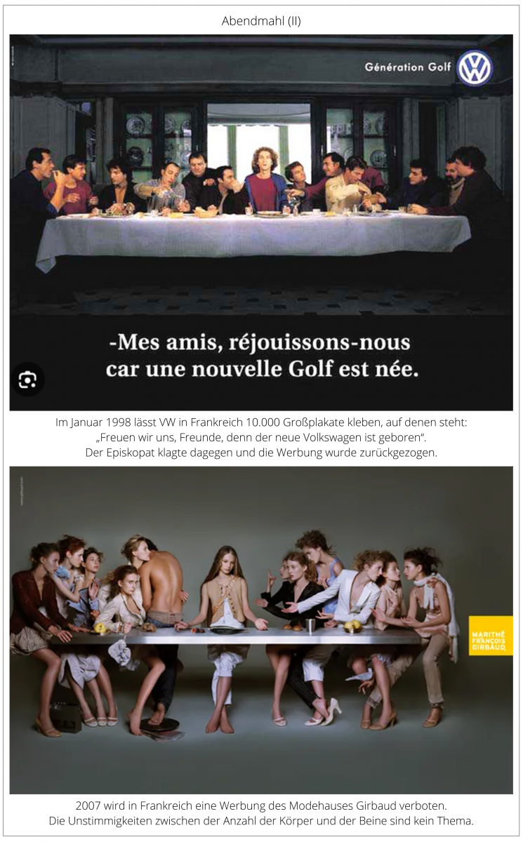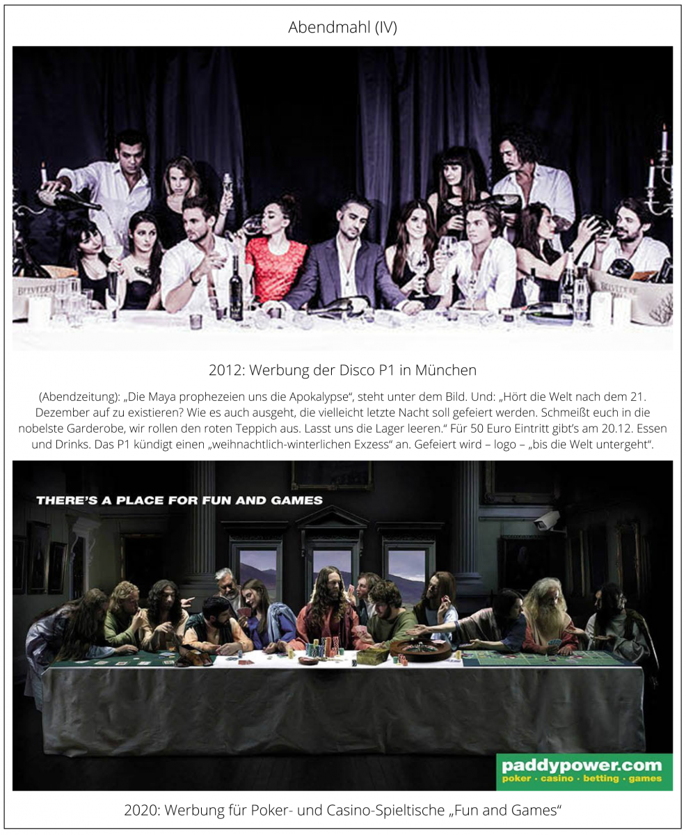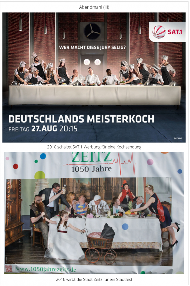 - 2016: Die Stadt Zeitz lässt Werbung mit einer Abendmahl-Variation plakatieren