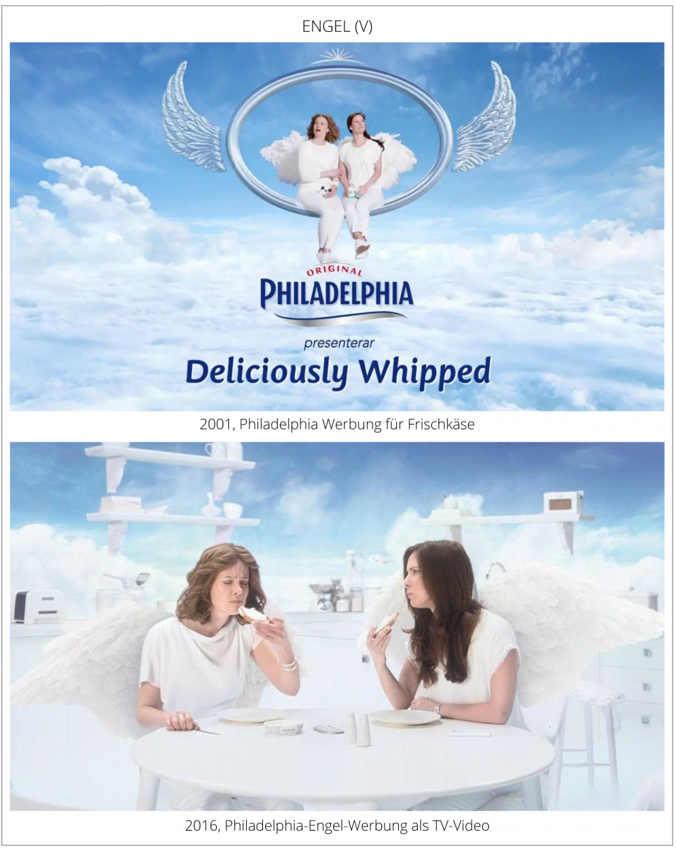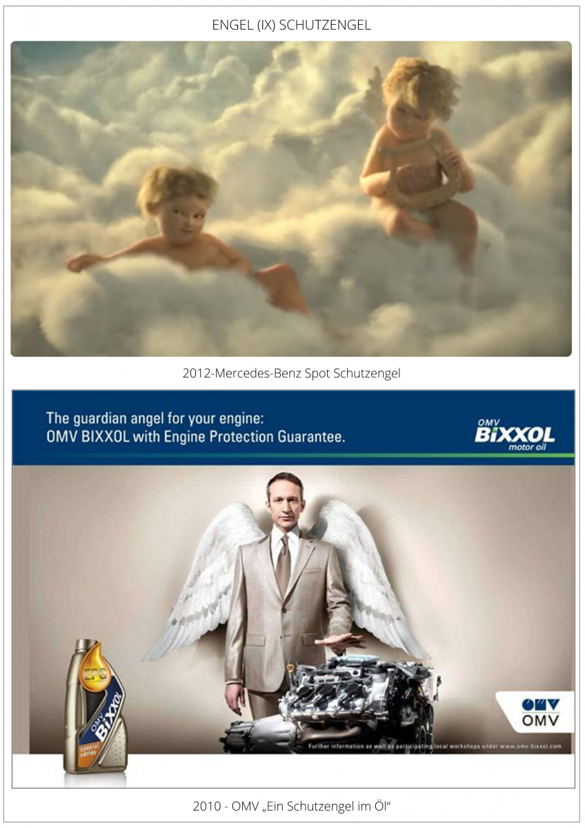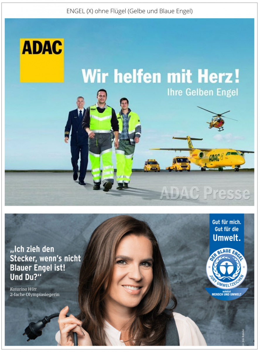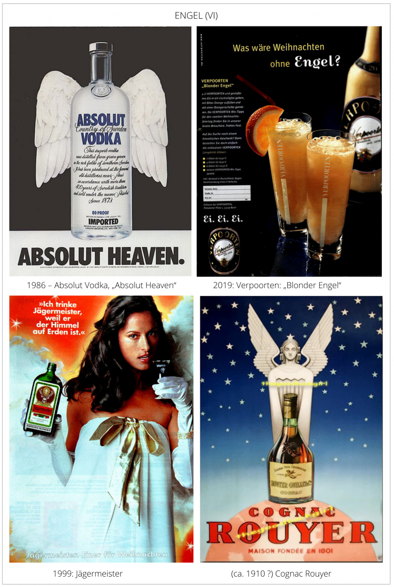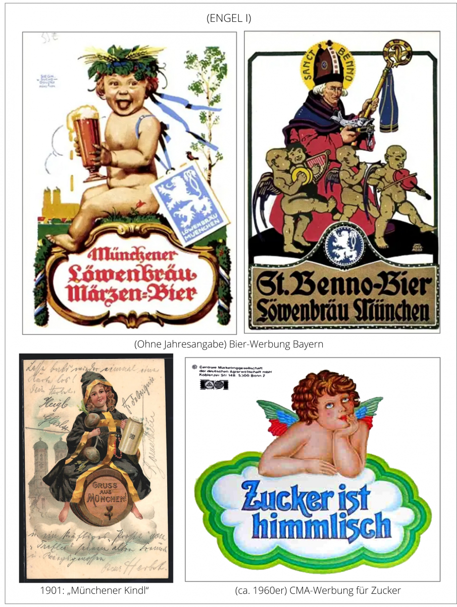 Für die Engel der Werbung wird das ganze Repertoire an Möglichkeiten dargestellt: als Kinder (Putten), weiblich – dezent, offenherzig bis erotisch – und Schutzengel, weiblich wie männlich.